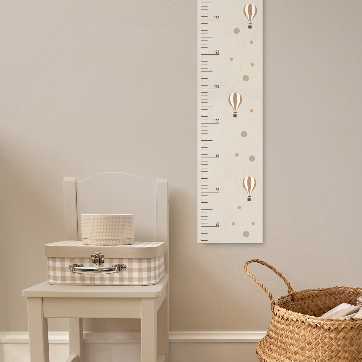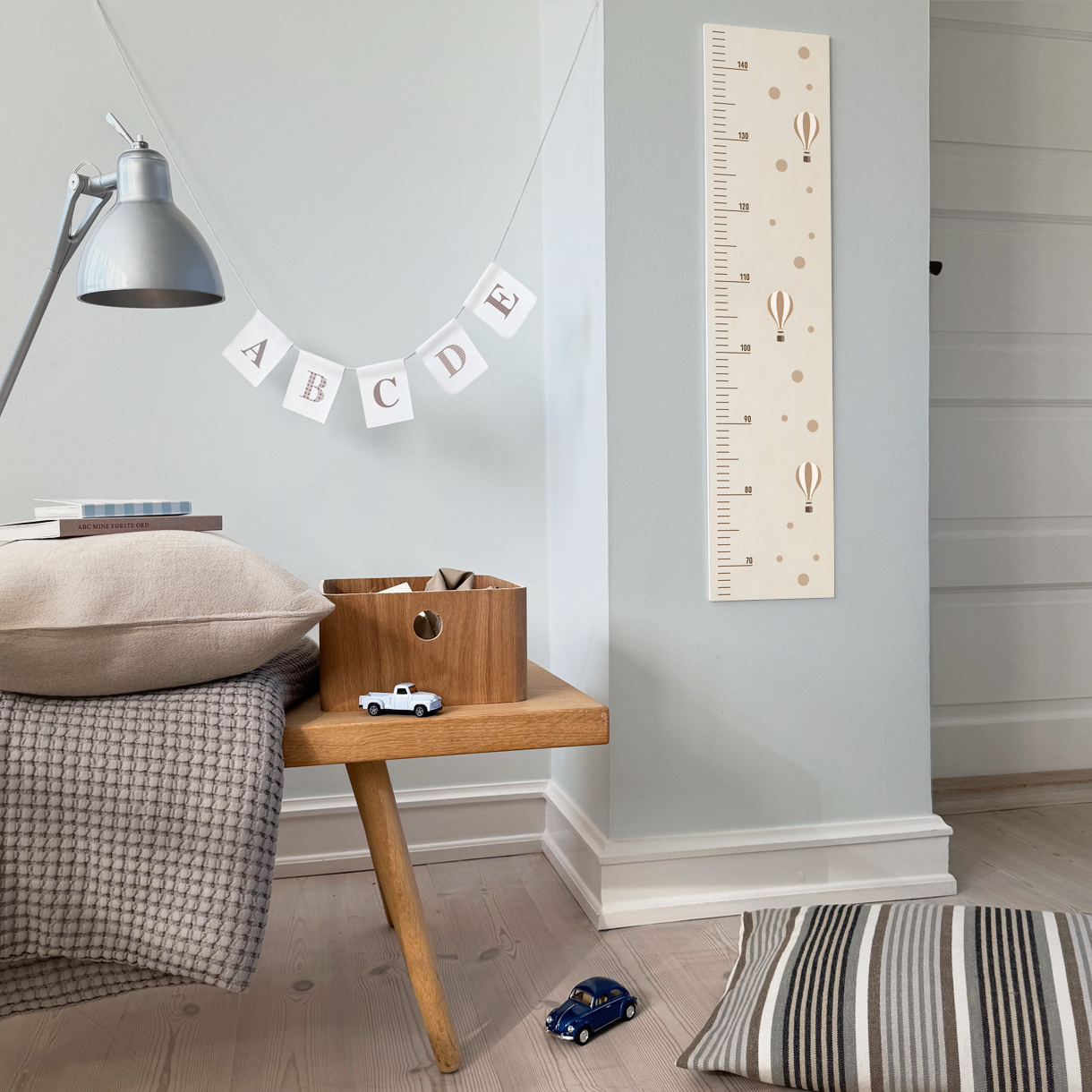 Højdemåler til børneværelset, designet i flot beige farve som pynter på enhver væg. Skriv barnets alder direkte med blyant eller tusch på højdemåleren, så hver vækst bliver en del af historien. Trykt med Greenguard-certificeret farver. Har en tykkelse på 0,5 cm. Et smukt og funktionelt interiør, der tilføjer charme til ethvert børneværelse.