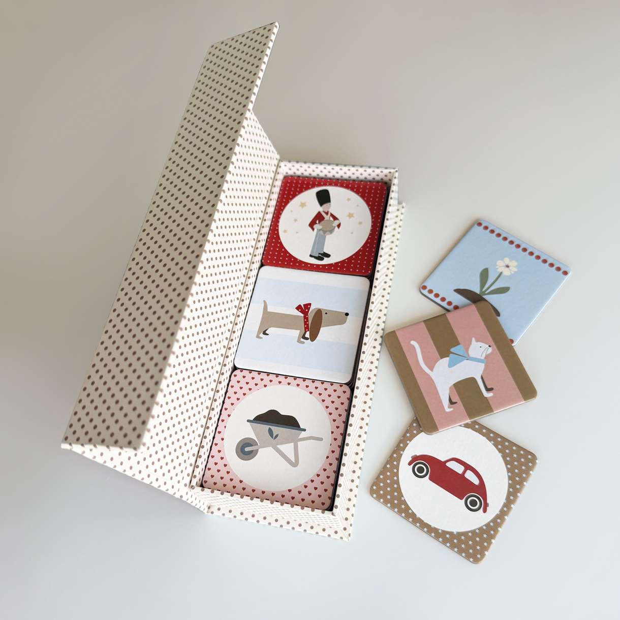 Vendespil fra Moa by Moa. Smukt design med enkel grafisk streg og unikke detaljer. Spillet stimulerer børns læring og hukommelse på en sjov og engagerende måde. Et hyggeligt spil for hele familien. De 30 brikker lægges med bagsiden op og man vender to brikker på skift, for at finde de brikker der passer sammen.