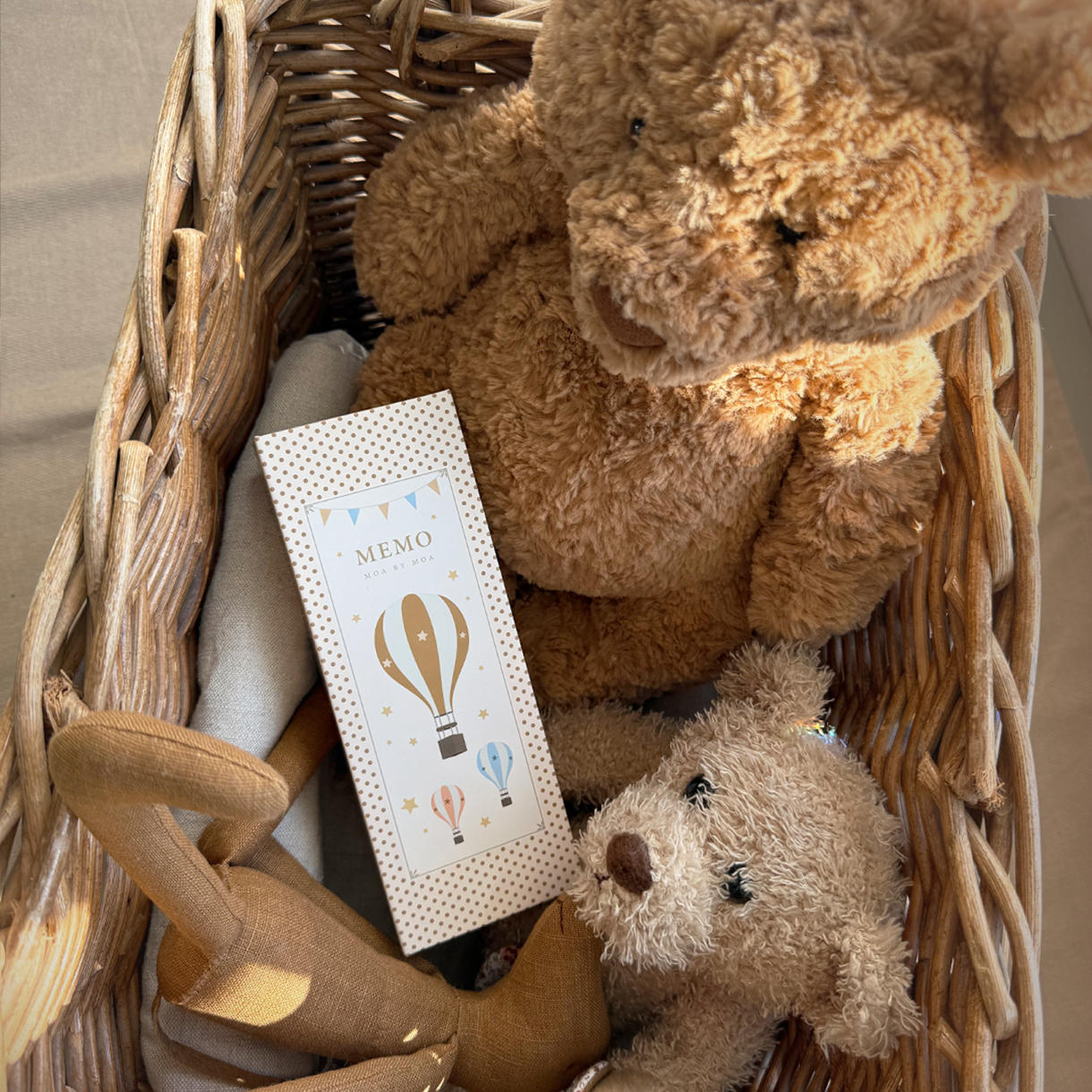 Den flotte æske har en størrelse, som er nem at have med i tasken på ferie og besøg. Samtidig er den så trendy og unik, at den vil pynte på enhver hylde på barnets værelse.